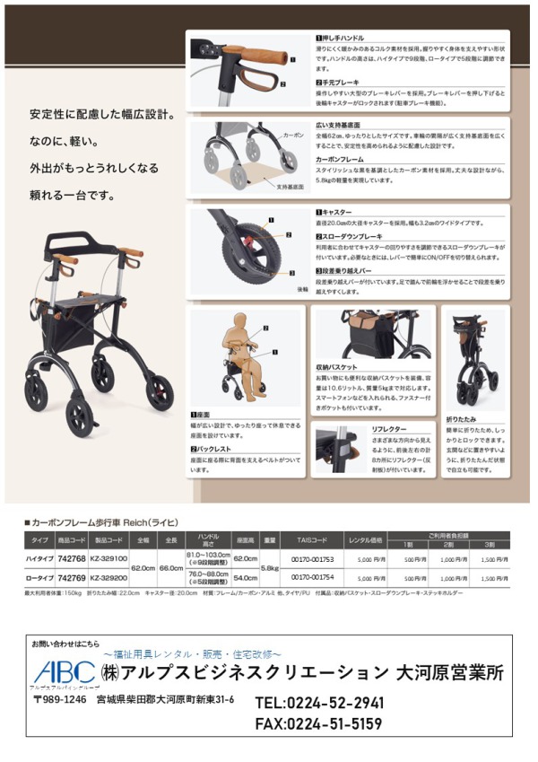 さて、今回は春の散歩や行楽にぴったりのおすすめの歩行器をご紹介致します。ハンドルをはじめ車体随所にコルク材を使い、フレームはマットな質感でとてもオシャレ。全幅は大きく基底支持面が広い為安定感も抜群です。体格に合わせ、支持高が選べるハイタイプ・ロータイプをそれぞれご用意。
